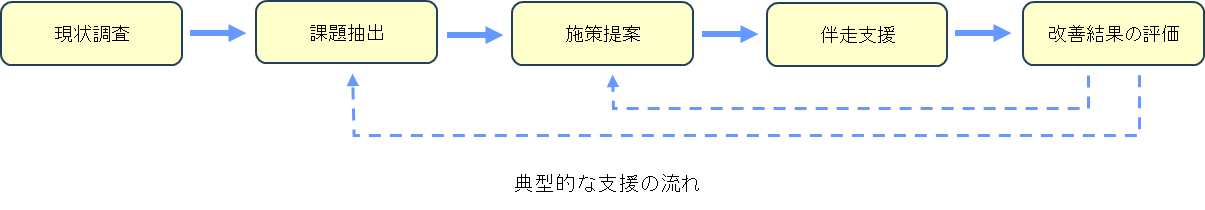 お客様の実情を踏まえ、最適な改善施策をご提案するには、まず現状の把握と課題の明確化から始める必要があります。